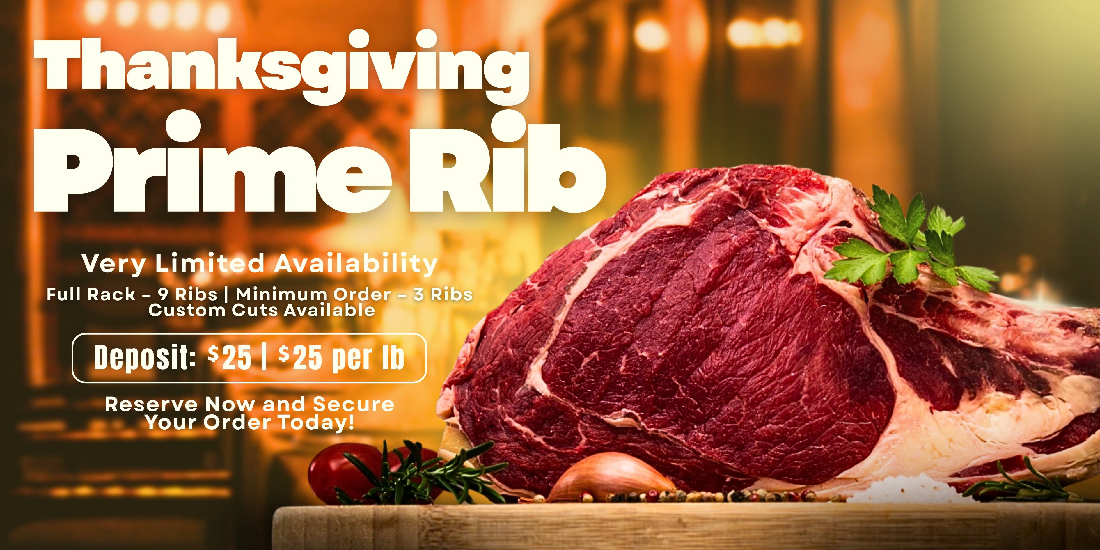 PRIME RIB - LIMITED STOCK AVAILABLE AT $25 DEPOSIT (THANKSGIVING SPECIAL)